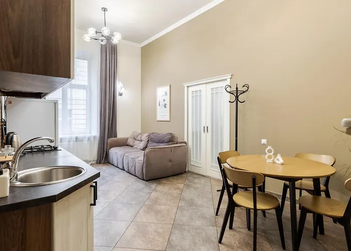 דירת Near Palac Potocki לבוב מציעה מטבח מצויד וכמו כן גם חדרים עם ספה, שולחן כתיבה וטלוויזיה רב ערוצית. האוניברסיטה הלאומית של לביב ע"ש איבאן פרנקו זה כ-250 מטר מהנכס, בזמן שThe Palace of Counts Goluchowski במרחק של 150 מטר משם.